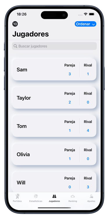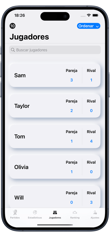 Visualiza el número de veces al que te has enfrentado a un rival o las veces que has jugado a su lado, analiza tu rendimiento como rivales o compañeros.