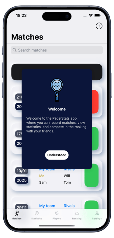 Descubre una nueva forma de registrar y controlar tus partidos de manera precisa y con un diseño moderno. Juega, mejora y domina la pista con la mejor herramienta para todos los jugadores de pádel.